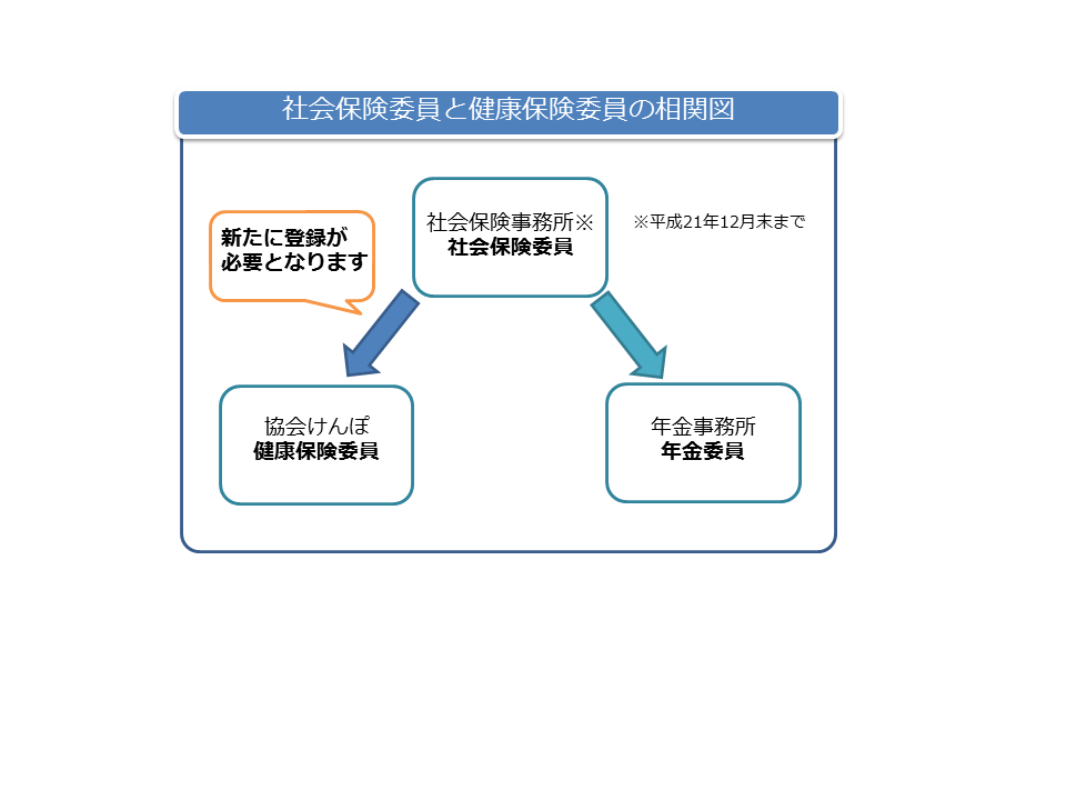 以前、社会保険事務所の社会保険委員となっていた方でも、協会けんぽの設立に伴い、健康保険委員には新たに手続きいただく必要があります。