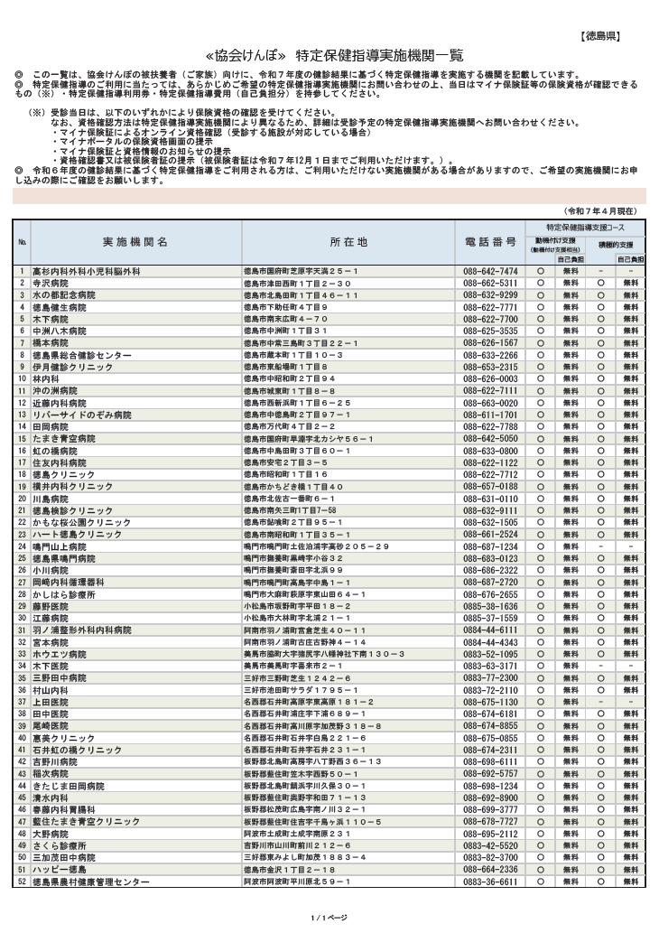 徳島支部の健診・保健指導のご案内