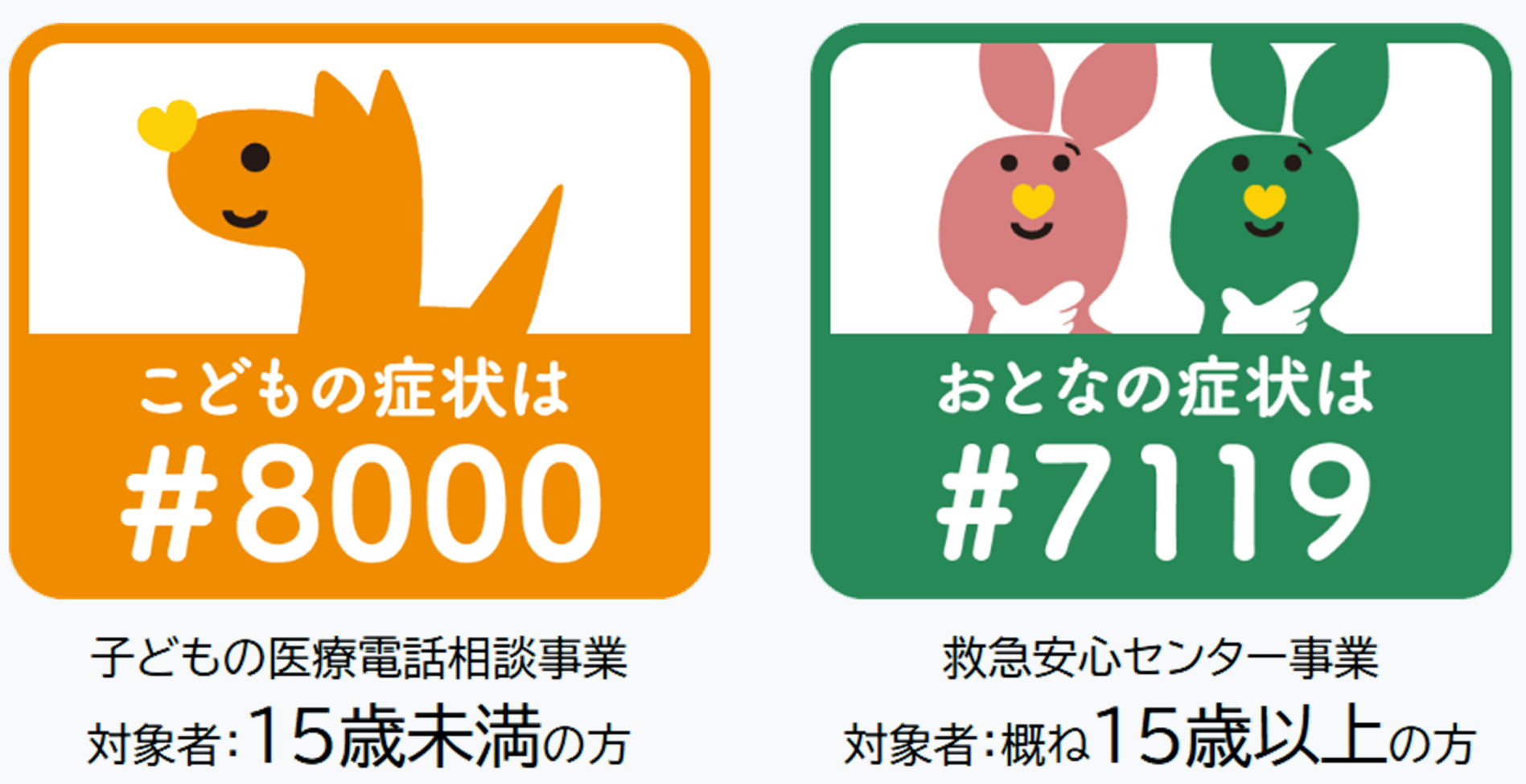 診療時間外にお子さまの病気で迷ったら、こども医療電話相談「#8000」へご相談ください。