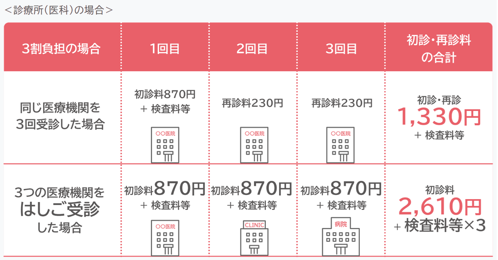 「はしご受診」は、受診のたびに初診料や 同じような検査料等がかかり、 検査による体への負担や医療費がかさみます。