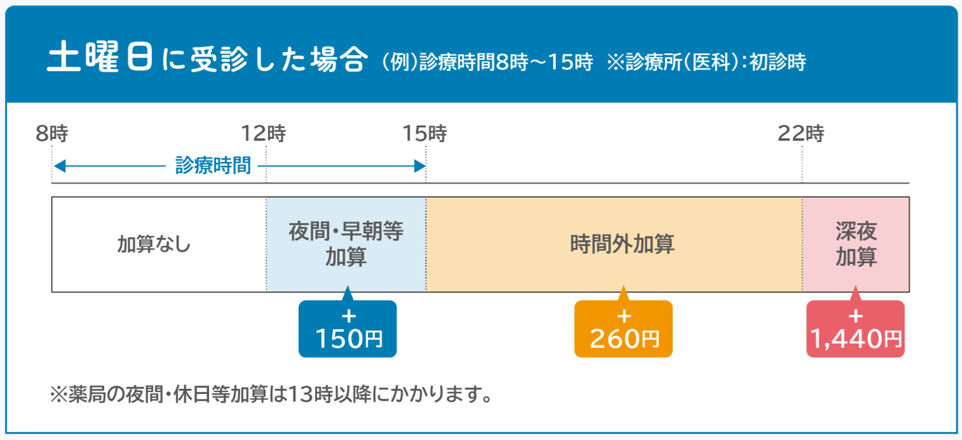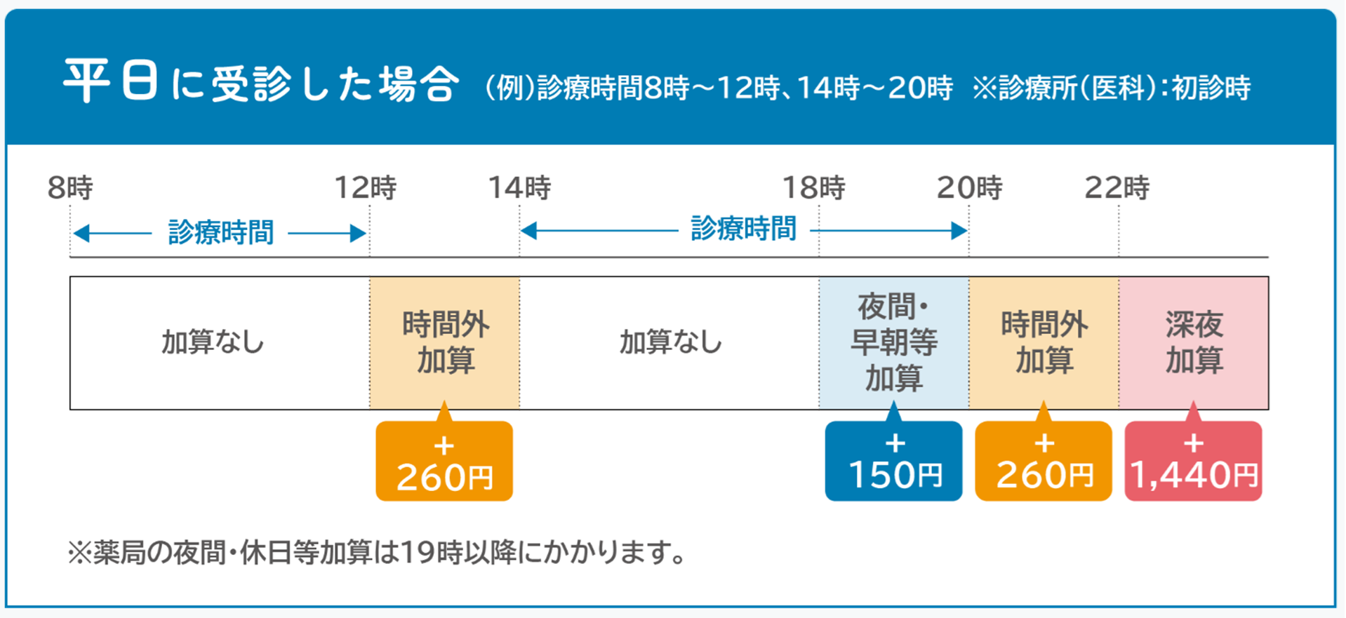 休日や夜間など診療時間外の受診は割増料金がかかります。