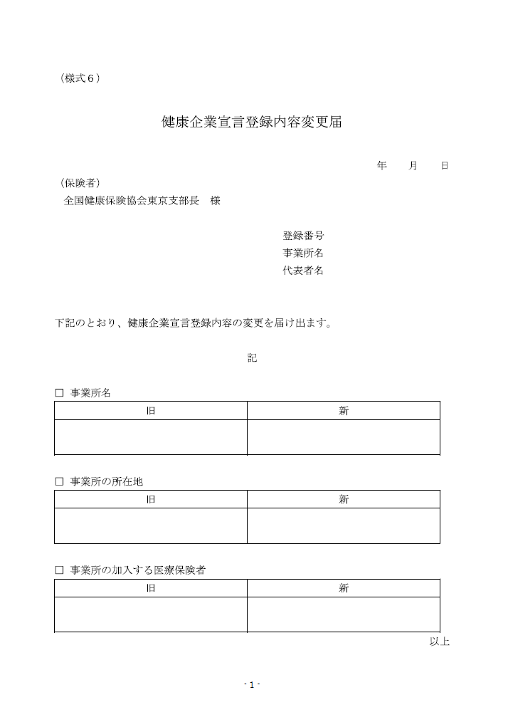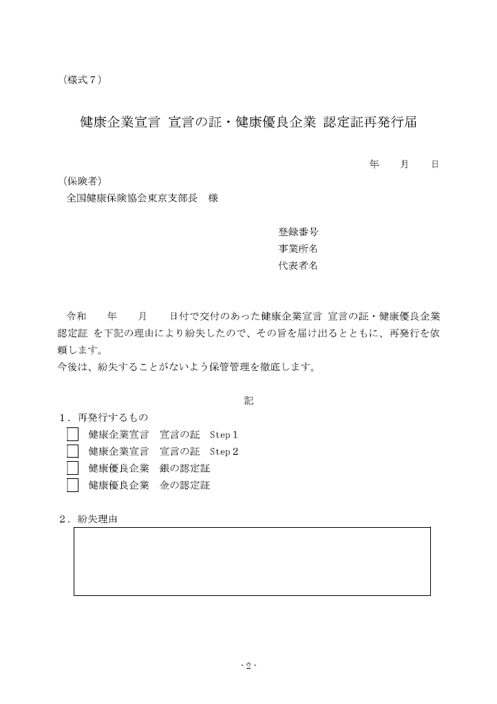 令和7年4月1日以前に健康企業宣言を行っている事業所様は、従来の7分野が掲載されている