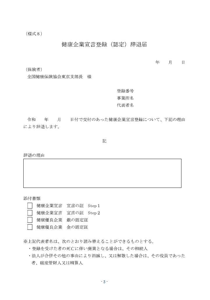 登録内容の変更や認定の辞退、宣言の証等の再発行をご希望の場合は、以下の書類をご提出ください。