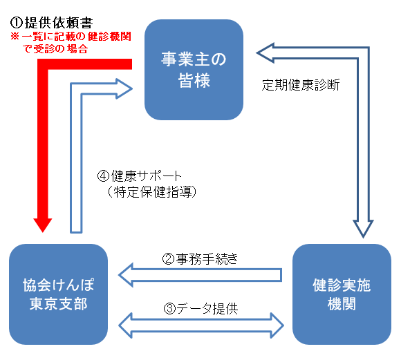 • 事業主様から協会けんぽ東京支部へ提供依頼書のご提出をお願いいたします。