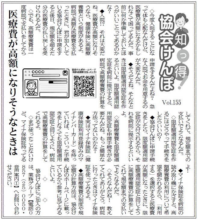 知っ得!協会けんぽVol.155「医療費が高額になりそうなときは」