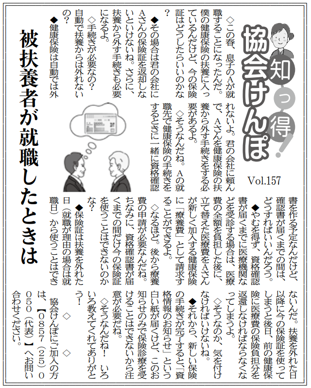 知っ得!協会けんぽVol.157「被扶養者が就職したときは」