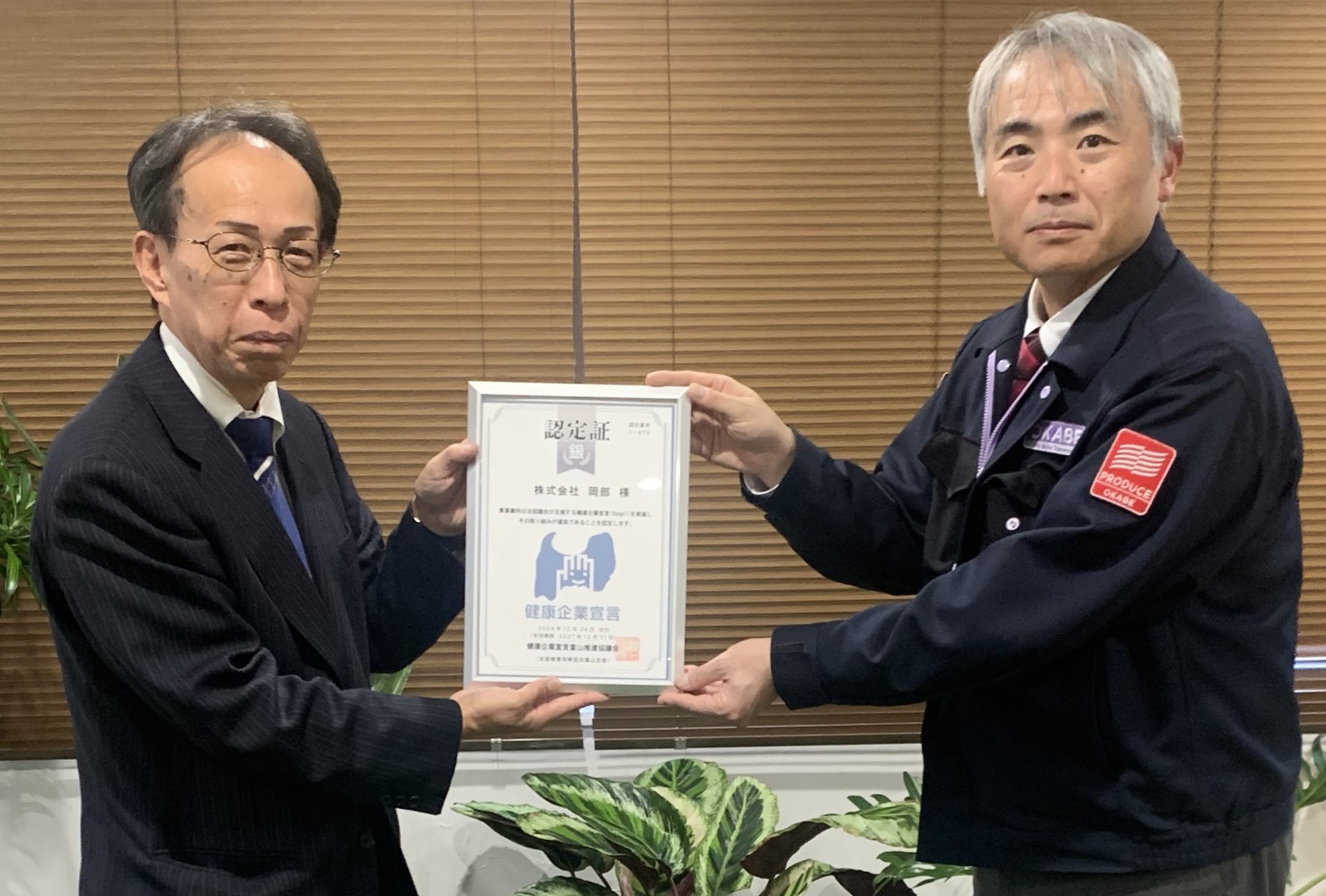 令和6年12月「とやま健康企業宣言」銀(Step1)の認定をしました