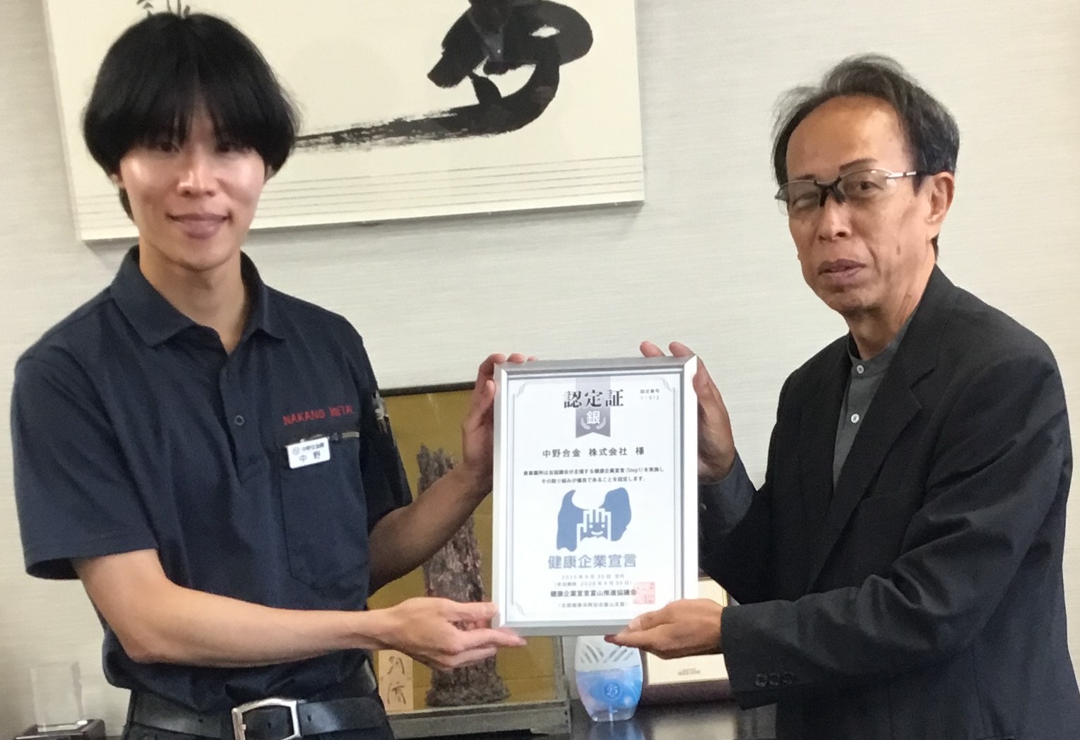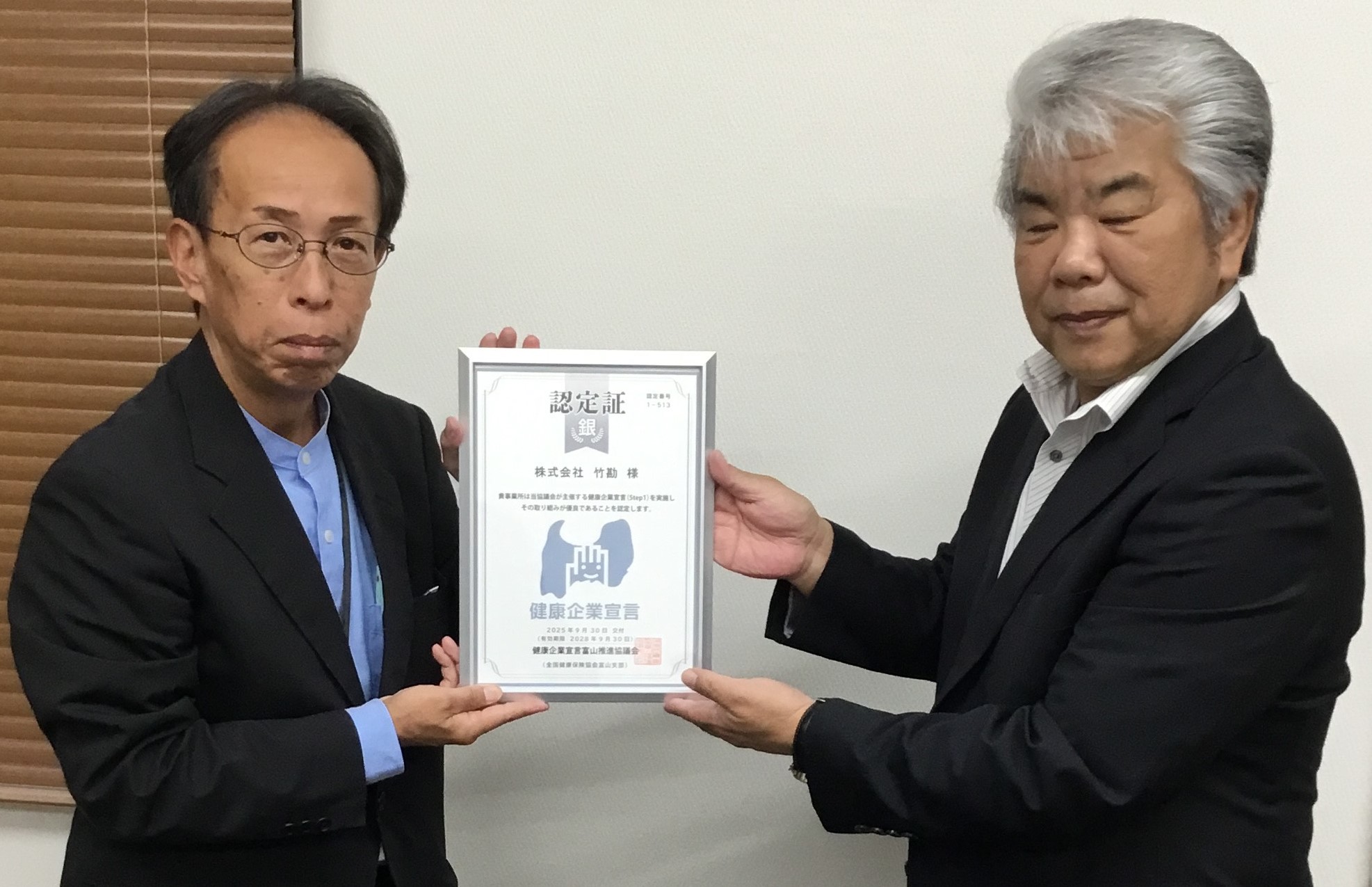 令和7年9月「とやま健康企業宣言」銀(Step1)の認定をしました