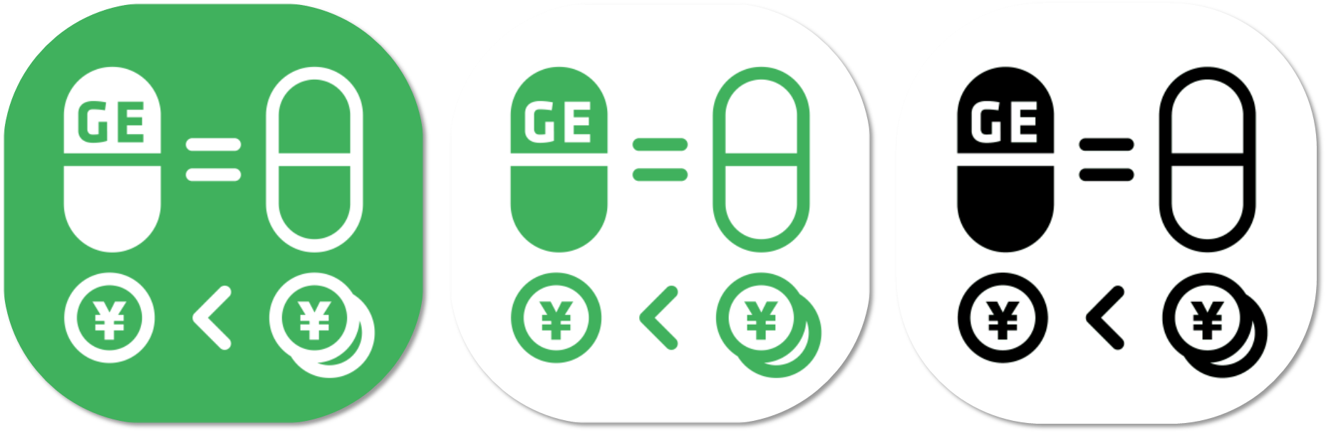 後発医薬品が先発医薬品と比較して品質・効き目・安全性が同等、かつ安価である状況をコンセプトに作成。