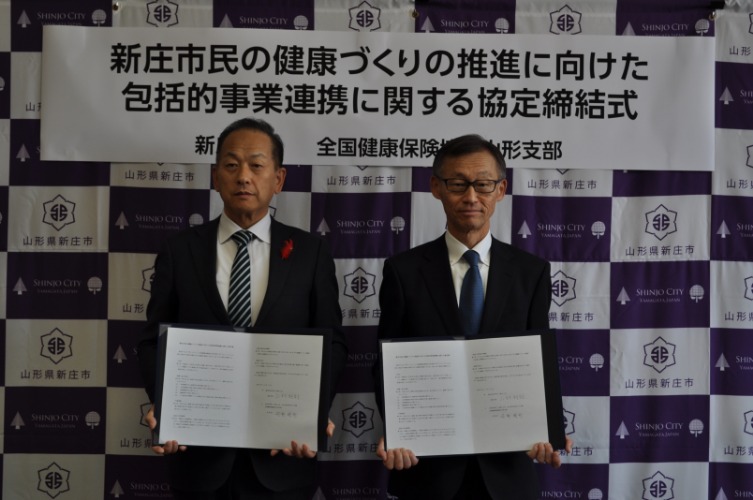 新庄市と協会けんぽ山形支部が、相互に連携・協力を行い、健康づくりの推進に向けた取組を通じて、新庄市民のより一層の健康的な生活の実現を図ることを目的としています。